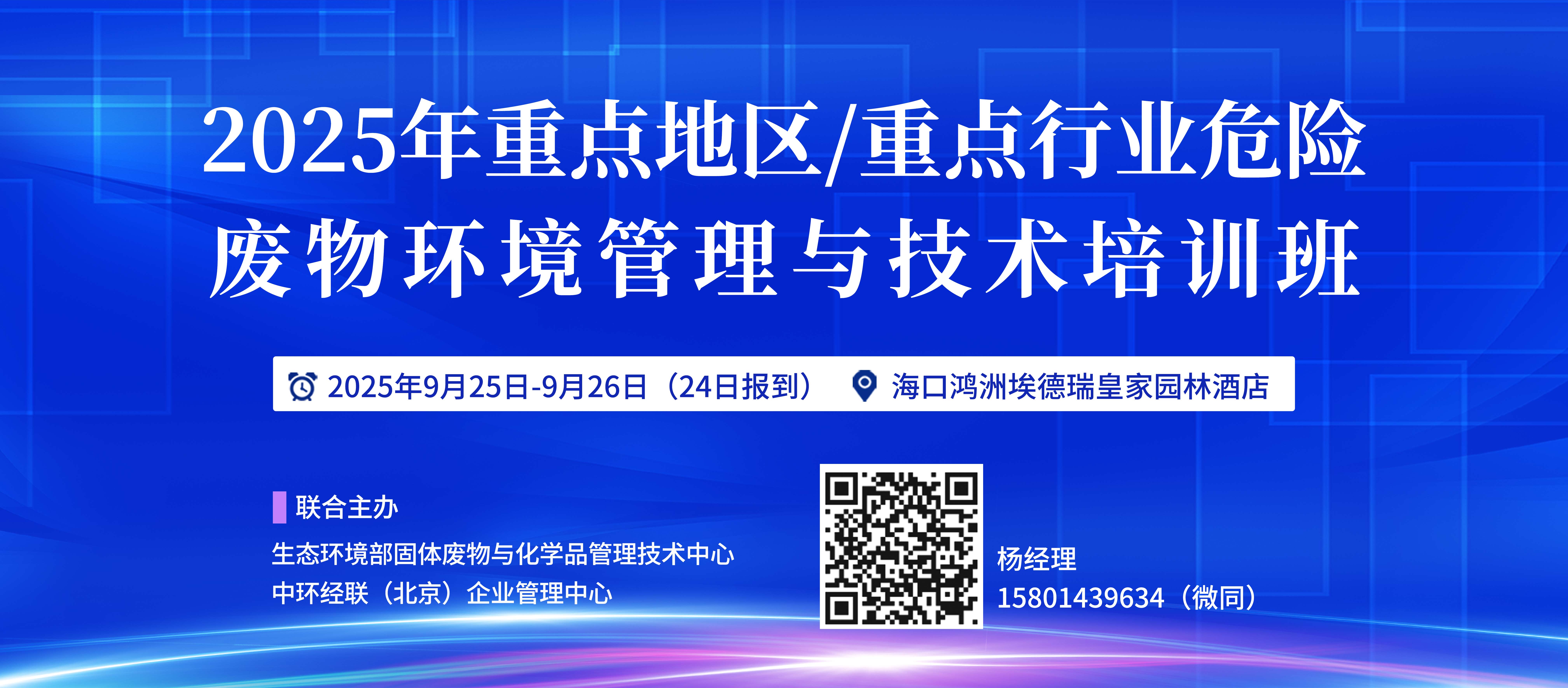 • 【9月·海口】2025年重點地區/重點行業危險廢物環境管理與技術培訓班 重磅來襲!